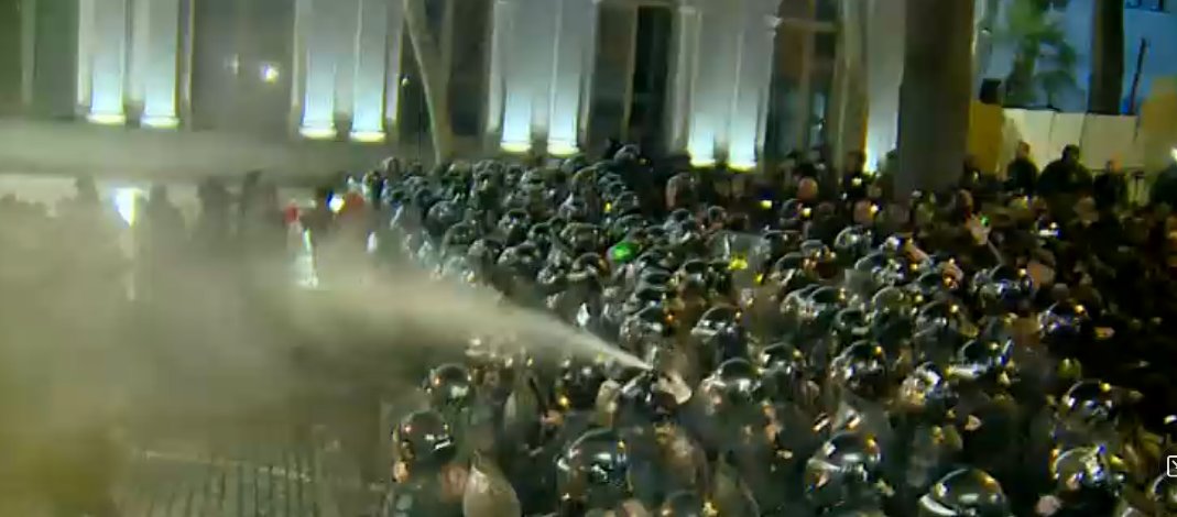 The police have used water cannons and tear gas to disperse peaceful demonstrators in central Tbilisi, following the vote on a controversial foreign agents bill and its approval with its first reading early on Tuesday. The bill proposed by forme...