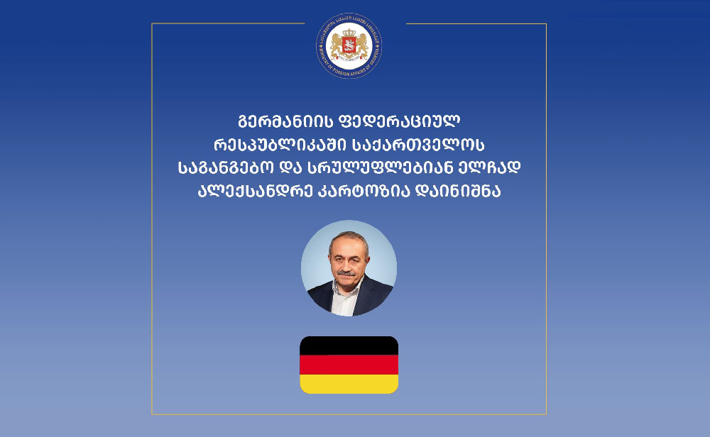 Aleksandre Kartozia has been appointed Georgia’s extraordinary and plenipotentiary ambassador to the Federal Republic of Germany, the Ministry of Foreign Affairs announced on Tuesday. Kartozia brings extensive experience in public service, having pr...