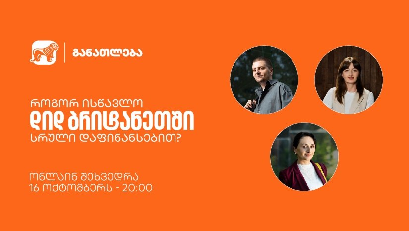 დიდი ბრიტანეთის წამყვან უნივერსიტეტებში სწავლით დაინტერესებული ახალგაზრდებისთვის, “საქართველოს ბანკი” ონლაინ შეხვედრას მართავს. დისკუსიის ფარგლებში, საქართველოს ბანკის სტიპენდიატები CHEVENING-ის პროგრამაში საქართველოს ბანკის 100%-იანი სტიპენდიის მოპ...
