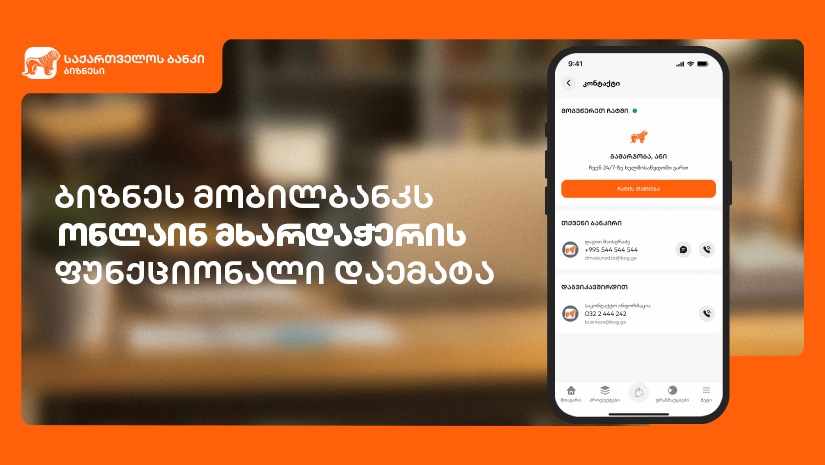 საქართველოს ბანკის ბიზნესმობილბანკი განახლდა. ამიერიდან, ბიზნეს მობილბანკის მომხმარებლებს შესაძლებლობა აქვთ, 24/7-ზე ისარგებლონ ონლაინ კონსულტაციით და სასურველი ინფორმაცია ან მხარდაჭერა მიიღონ. ონლაინ მხარდაჭერის მისაღებად აპლიკაციაში, კონტაქტები...