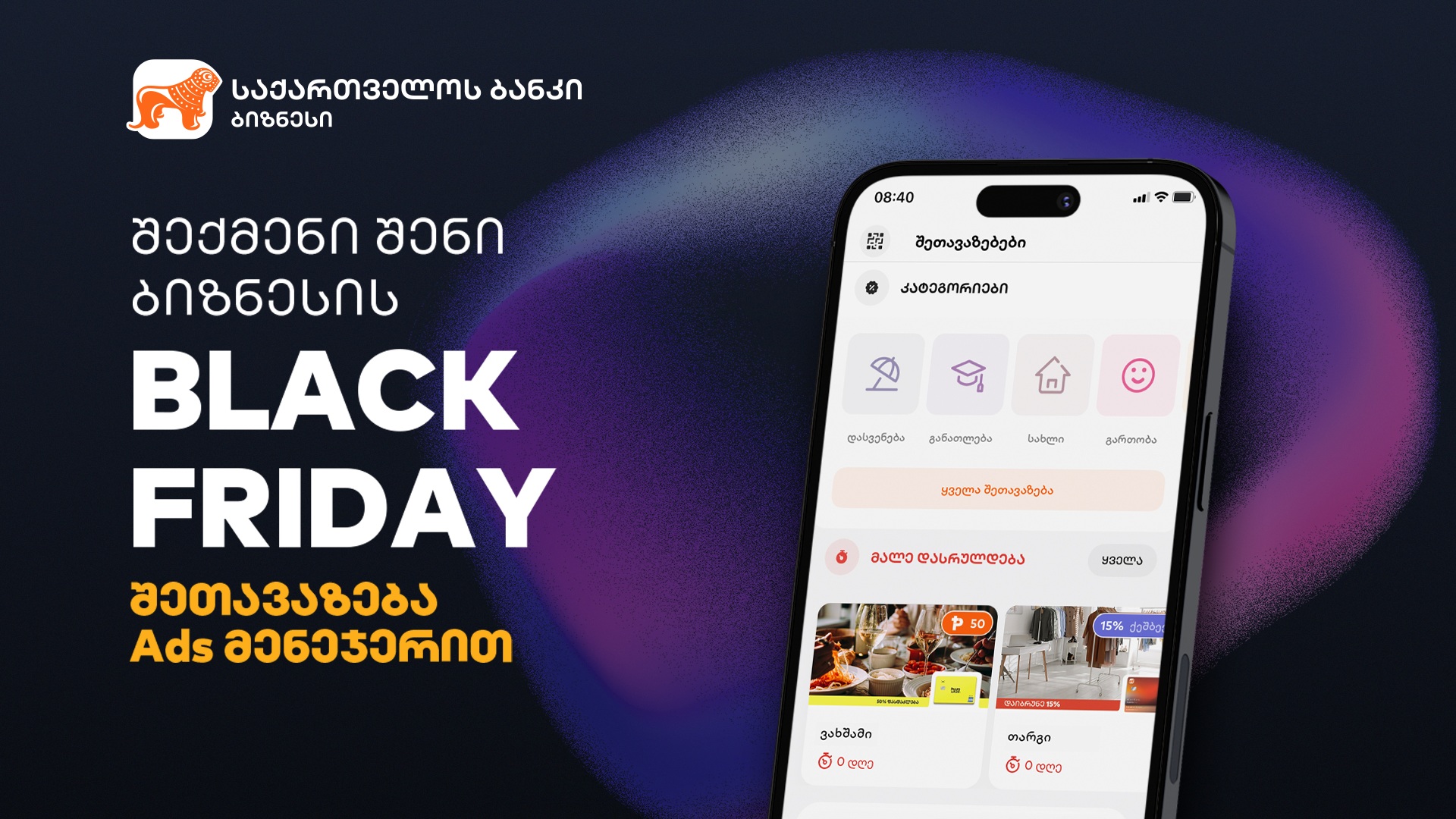 “საქართველოს ბანკი” ბიზნესის მხარდაჭერას და მათ საჭიროებებზე მორგებული პროდუქტებზე მუშაობას აქტიურ რეჟიმში აგრძელებს. ბანკის ბიზნეს მომხმარებლებს შესაძლებლობა აქვთ საქართველოს ბანკის Ads მენეჯერის მეშვეობით, Black Friday-ის შეთავაზებები შექმნან და 1 ...