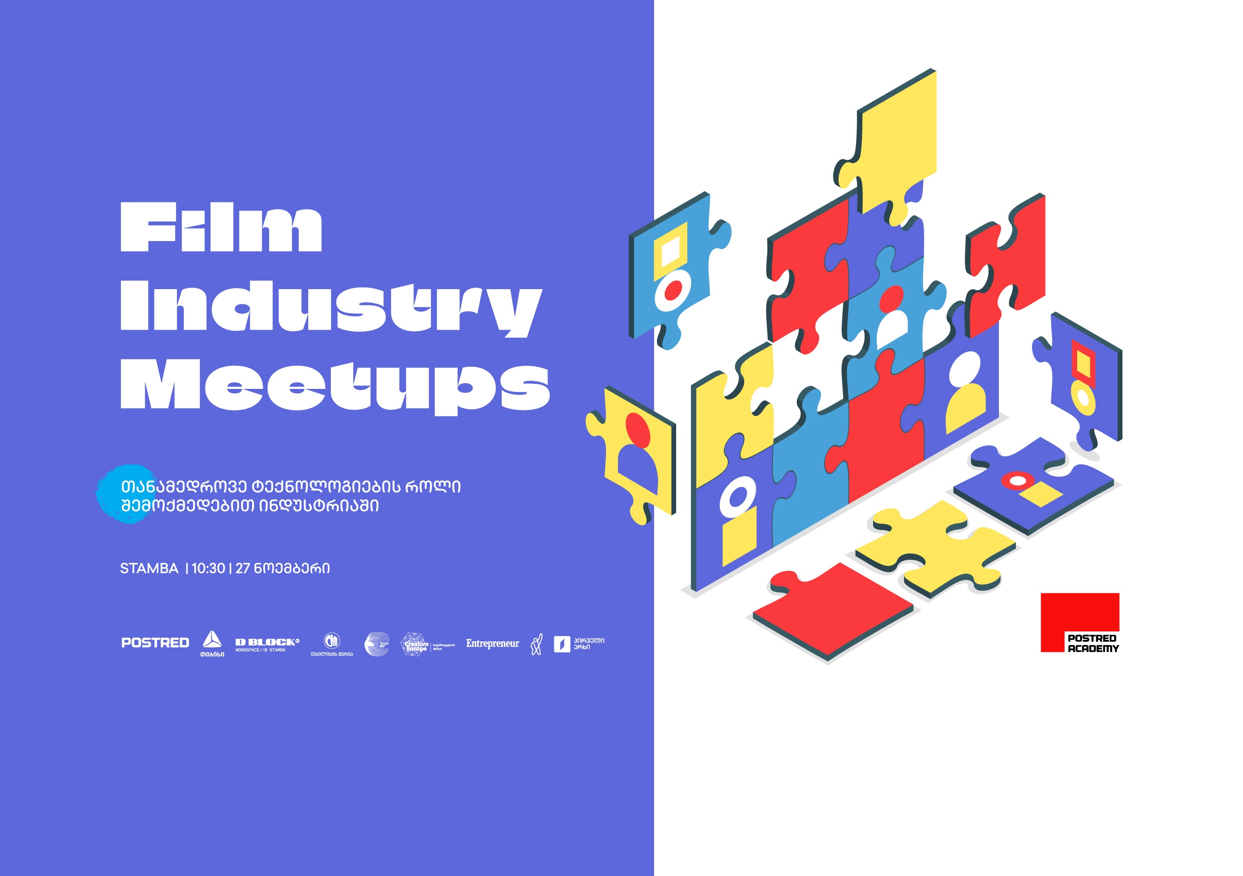 თიბისის მხარდაჭერით, 27 ნოემბერს Film Industry Meetups გაიმართება, რომლის მთავარ თემასაც შემოქმედებით ინდუსტრიაში თანამედროვე ტექნოლოგიების როლი წარმოადგენს. ღონისძიების მიზანი შემოქმედებით სფეროში არსებული პროფესიების მიმართ ცნობიერების ამაღლება, ნე...