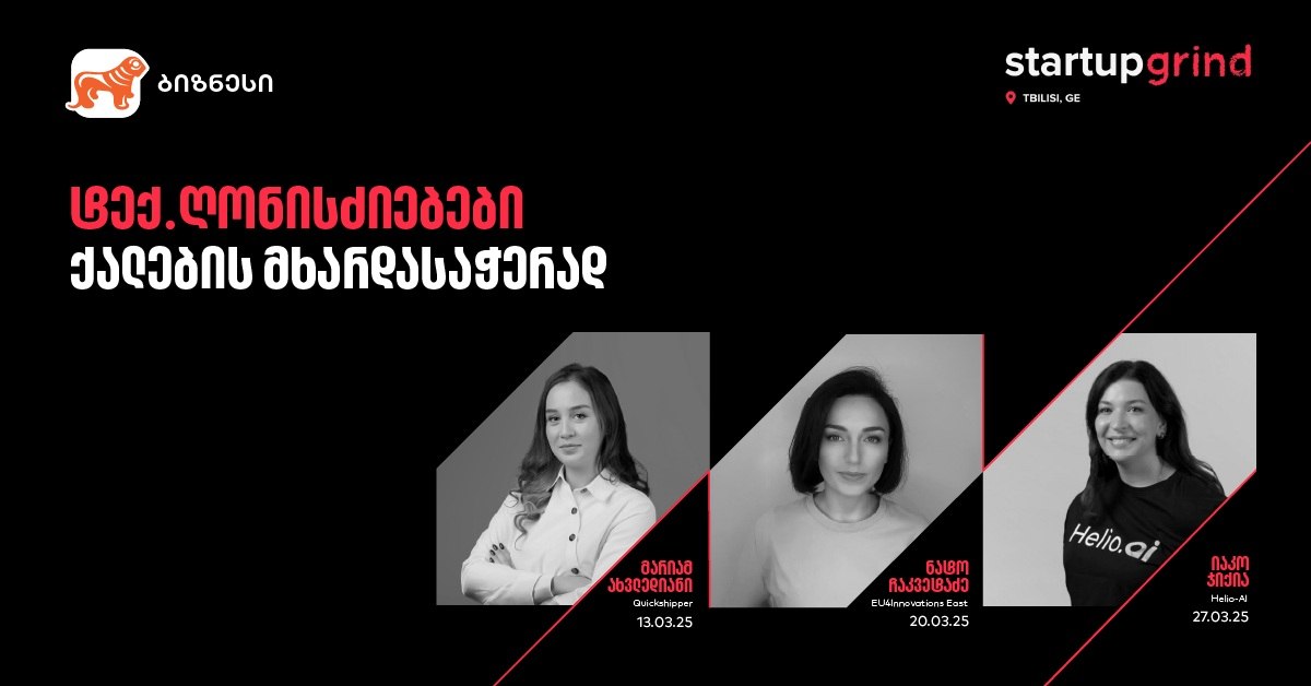 “საქართველოს ბანკი” [https://bankofgeorgia.ge/ka/business?utm_source=pr&utm_medium=Text&utm_campaign=Startup+Grind], ბიზნეს 360-ის ფარგლებში, Startup Grind-თან ერთად, მარტის თვეს ქალ მეწარმეებს უძღვნის. აღნიშნული ინიციატივის ფარგლებში 13 მარტს, ტერმ...