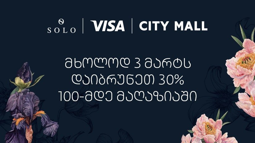 3 მარტის დღესთან დაკავშირებით, SOLO მომხმარებლებს საგაზაფხულო შეთავაზებებს City Mall საბურთალოსა და City Mall გლდანში სთავაზობს. სითი მოლის პარტნიორ ობიექტებში SOLO Visa ბარათით საქართველოს ბანკის პოსტერმინალზე გადახდისას 30%-იანი ქეშბექი შემდეგი ...