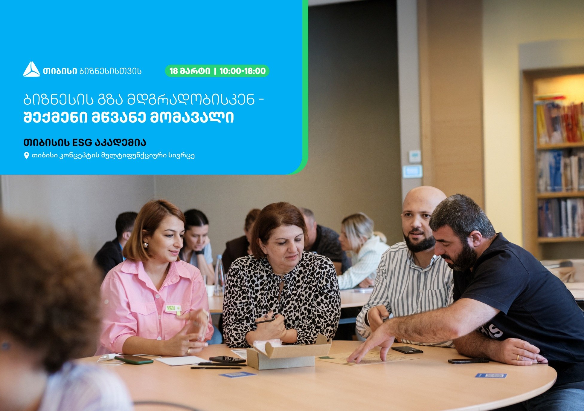 18 მარტს, თბილისში, თიბისი კონცეპტის მულტიფუნქციურ სივრცეში, ბიზნესსექტორის წარმომადგენლებს შესაძლებლობა ექნებათ, დაესწრონ თიბისის ESG აკადემიის ტრენინგს – „ბიზნესის გზა მდგრადობისკენ – შექმენი მწვანე მომავალი“. ტრენინგი სპეციალურად ბიზნესების წარმ...
