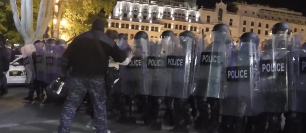 პარლამენტის მიმდებარე ტერიტორიაზე ვითარება დაიძაბა. სამართალდამცველებს შეკრებილები ადგილიდან ძალის გამოყენებით გაჰყავს, გამოიყენეს “წიწაკის სპრეი”. ადგილი აქვს დაპირისპირებას. სპეცრაზმი მოქალაქეებს ფიზიკურად უსწორდება. ისმის გამაფრთხილებელი ს...