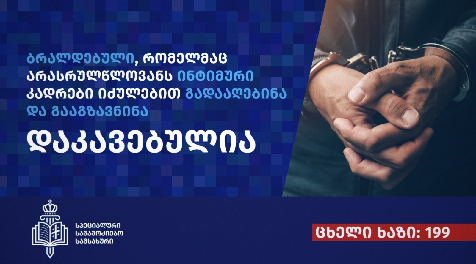 სპეციალური საგამოძიებო სამსახურის თანამშრომლებმა, არასრულწლოვანი გოგონას პირადი ცხოვრების საიდუმლოს ხელყოფის ფაქტზე, 2000 წელს დაბადებული გ.ბ. დააკავეს. “გამოძიებით დადგინდა, რომ ბრალდებულმა, 2023 წლის სექტემბერში სოციალური ქსელით 13 წლის გოგო გა...