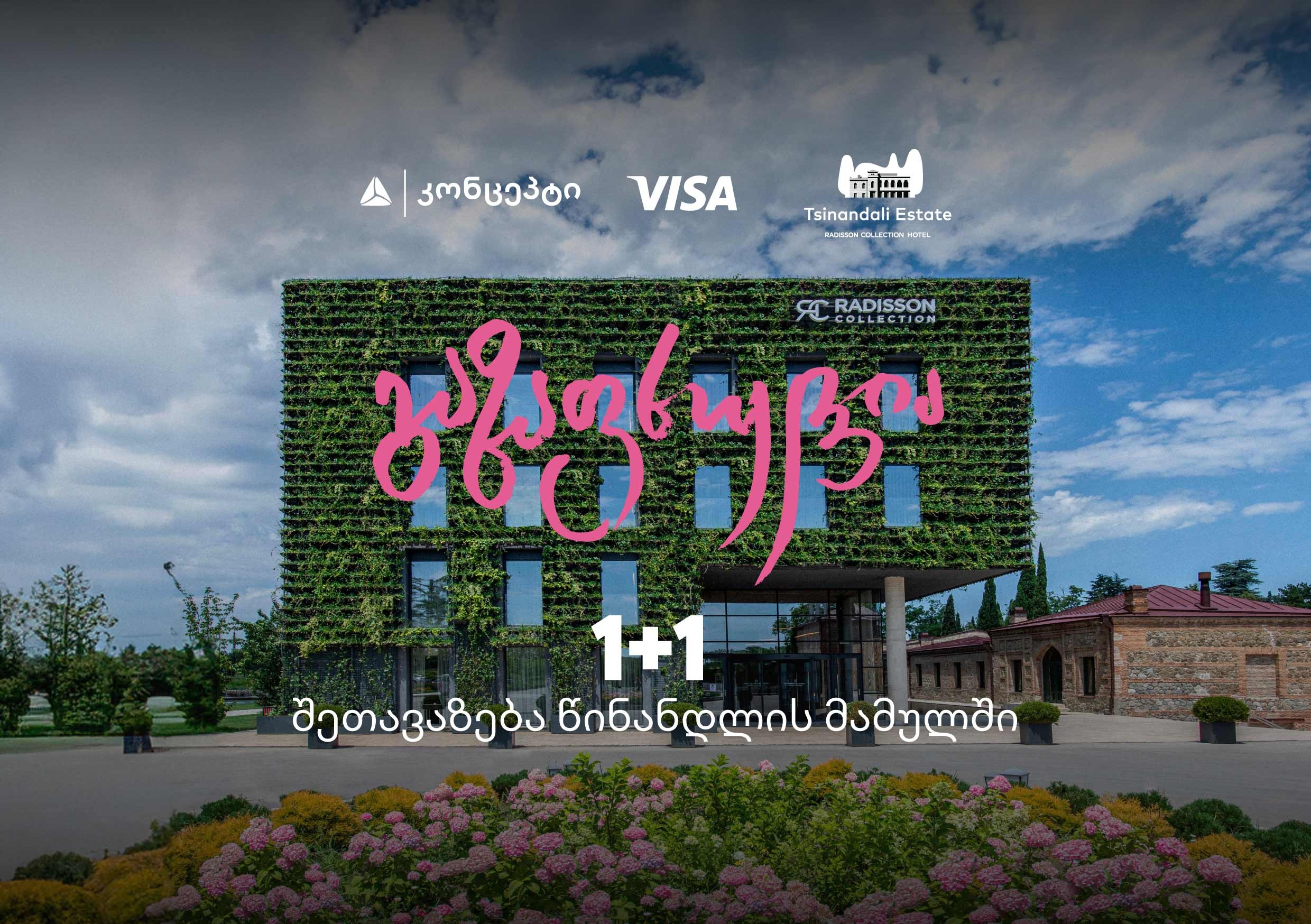 თიბისი კონცეპტის მომხმარებლებს 14 აპრილის ჩათვლით, შესაძლებლობა აქვთ ისარგებლონ 1+1 შეთავაზებით წინანდლის მამულის სასტუმროში, რადისონ ქოლექშენი. კონცეპტ ასისტენტით ნომრის დაჯავშნისა და ადგილზე თიბისი კონცეპტის Visa ბარათით გადახდის შემთხვევაში, მ...