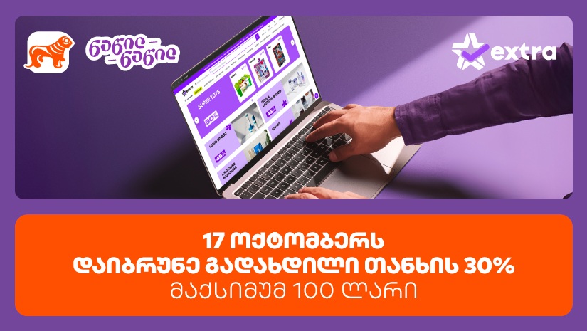 "საქართველოს ბანკი" მომხმარებლების წახალისებას განაგრძობს. ამჯერად, ბანკი, ერთგულ მომხმარებლებს extra.ge [http://extra.ge]-ზე შოპინგისას დახარჯული თანხის 30%-ის დაბრუნების შესაძლებლობას აძლევს. აღნიშნული შეთავაზების ფარგლებში, ის მომხმარებლები, რომ...