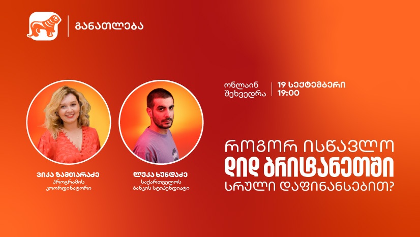 19 სექტემბერს, 19:00 საათზე, დაესწარი საქართველოს ბანკის მიერ გამართულ ვებინარს და გაიგე, როგორ მიიღო დიდ ბრიტანეთში, სამაგისტრო საფეხურზე სწავლის სრული დაფინანსება. შეხვედრაზე დასწრების მსურველებმა უნდა გაიარონ რეგისტრაცია ბმულზე: http://go.bog.g...