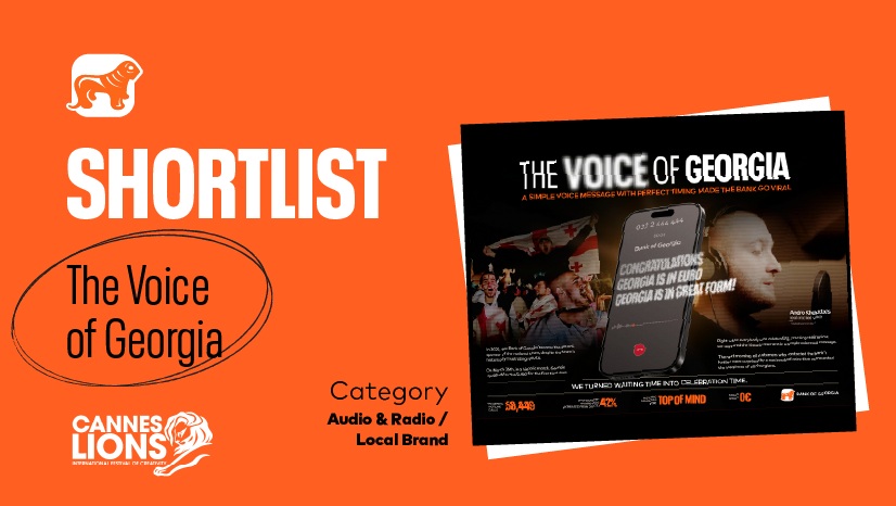 "საქართველოს ბანკის" კამპანია „საქართველოს ხმა“ კანის ლომების საერთაშორისო ფესტივალის Audio & Radio-ს კატეგორიაში რჩეულთა შორის [https://www.lovethework.com/work-awards/results/cannes-lions/audio-radio] მოხვდა. აღნიშნულ კატეგორიაში 704 პროექტი იყო წ...