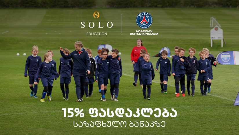 SOLO Education-ისა და Anglo-Georgia-ს თანამშრომლობის ფარგლებში, ექსკლუზიურად SOLO მომხმარებლებს შესაძლებლობა აქვთ, დიდ ბრიტანეთში, Paris Saint-Germain-ის აკადემიის საზაფხულო ბანაკზე ისარგებლონ 15%-იანი ფასდაკლებით. საზაფხულო ბანაკის ფარგლებში, 8-17 ...