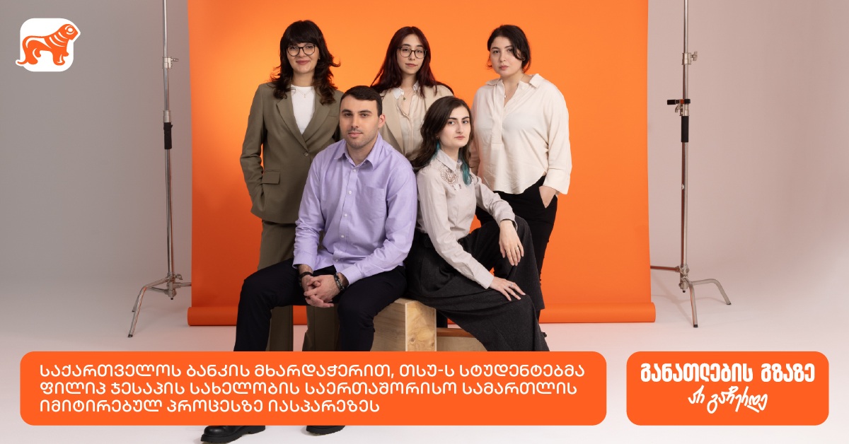 "საქართველოს ბანკის" მხარდაჭერით, თბილისის სახელმწიფო უნივერსიტეტის სტუდენტებმა ფილიპ ჯესაპის სახელობის საერთაშორისო სამართლის იმიტირებულ პროცესში მიიღეს მონაწილეობა. ფილიპ ჯესაპის საერთაშორისო სამართლის იმიტირებული პროცესი მსოფლიოში უდიდესი იმიტირე...