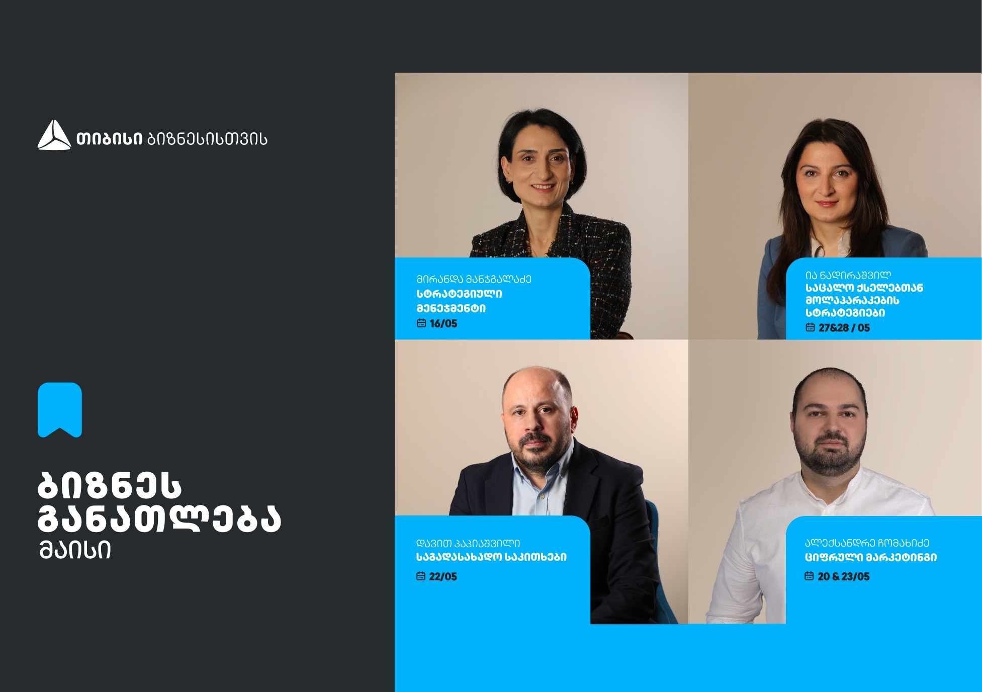 თიბისი ბიზნესის მხარდაჭერით, მაისის თვეში, ხუთი სხვადასხვა თემატიკის შეხვედრა გაიმართება. ბიზნესების წარმომადგენლებს შესაძლებლობა ექნებათ, პროფესიონალი ტრენერებისგან მათთვის საინტერესო საკითხებზე მიიღონ ამომწურავი ინფორმაცია და მიღებული ცოდნით, საკუ...