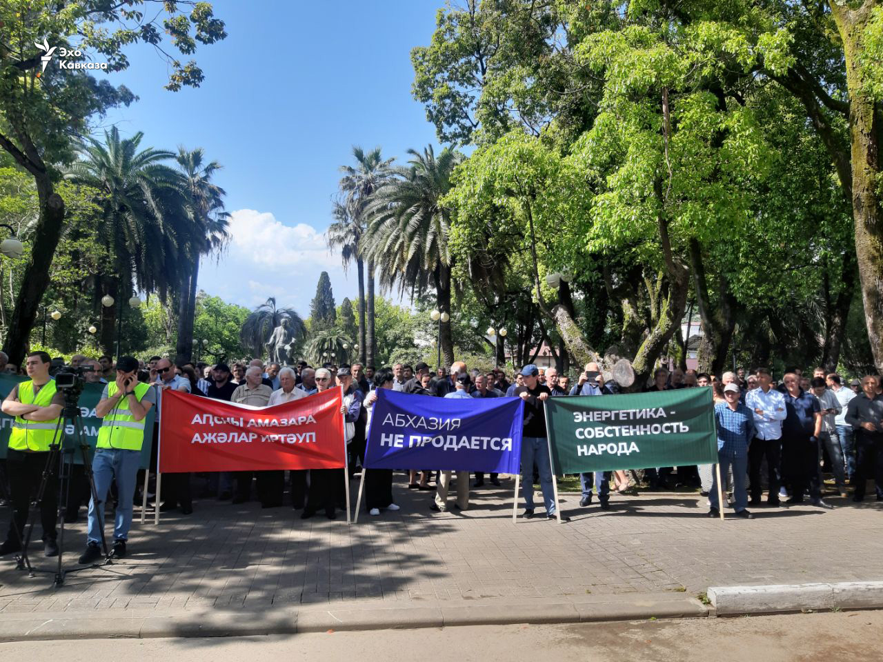 ოკუპირებული სოხუმის დრამატული თეატრის მიმდებარე მოედანზე აფხაზური ოპოზიციის “სახალხო აქცია” მიმდინარეობს. აქციის ორგანიზატორები და მონაწილეები ეწინააღმდეგებიან “კანონს ბინების, აფხაზეთის დასახლების, აფხაზური მიწების გასხვისებისა და ელექტროენერგიი...