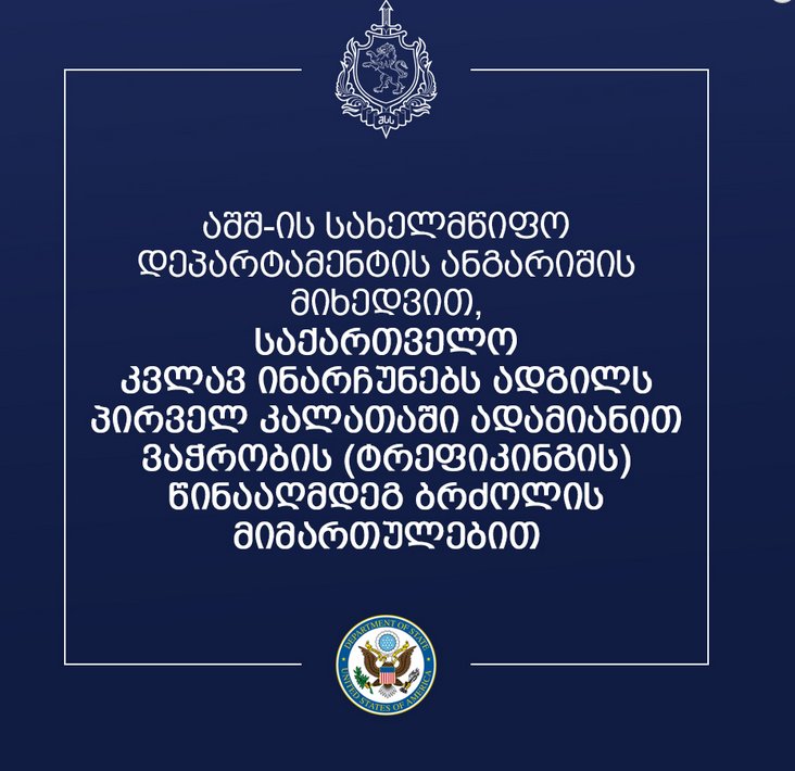 ამერიკის შეერთებული შტატების სახელმწიფო დეპარტამენტმა 2022 წლის 19 ივლისს გამოქვეყნა ყოველწლიური ანგარიში მსოფლიოს მასშტაბით ადამიანით ვაჭრობის (ტრეფიკინგის) წინააღმდეგ სახელმწიფოების მიერ განხორციელებული ღონისძიებების შეფასების შესახებ. გამოქვეყ...