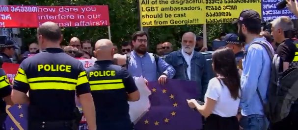 ლიეტუვის საელჩოსთან ძალადობრივი ჯგუფები აქციას მართავენ. მათ ადგილზე ლგბტ+ და ევროკავშირის დროშები დახიეს, რასაც რამდენიმე ადამიანის დაკავება მოჰყვა, მათ შორის მამა-შვილი ფალავანდიშვილები, რომლებიც აქციის ორგანიზატორები არიან. ფალავადნიშვილ...