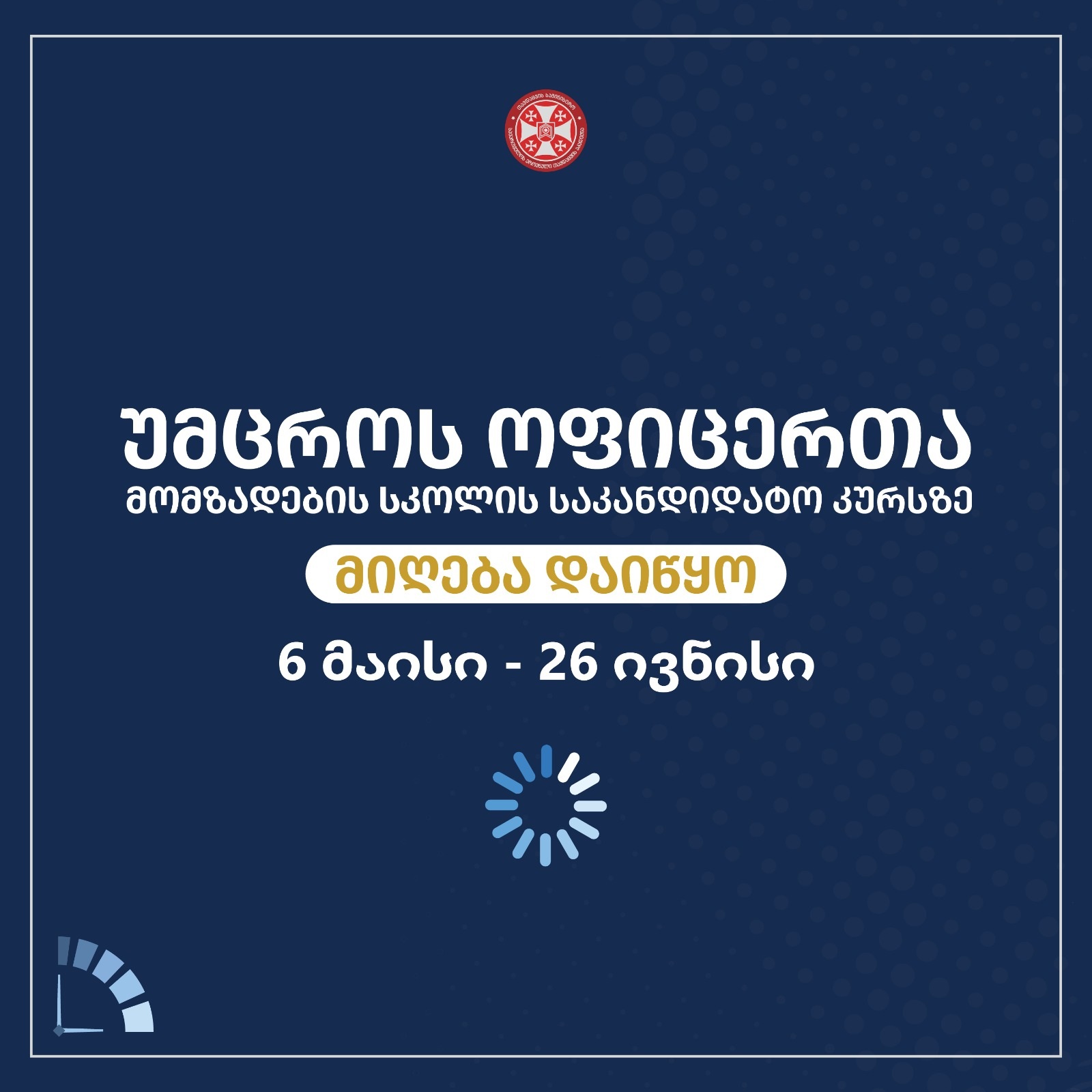 2025 წლის 6 მაისიდან 26 ივნისის ჩათვლით სსიპ - დავით აღმაშენებლის სახელობის საქართველოს ეროვნული თავდაცვის აკადემიაში უმცროს ოფიცერთა მომზადების სკოლის საკანდიდატო კურსზე საბუთების მიღება განხორციელდება. კურსზე მიიღებიან: ➤ უმაღლესი განათლების მქონ...