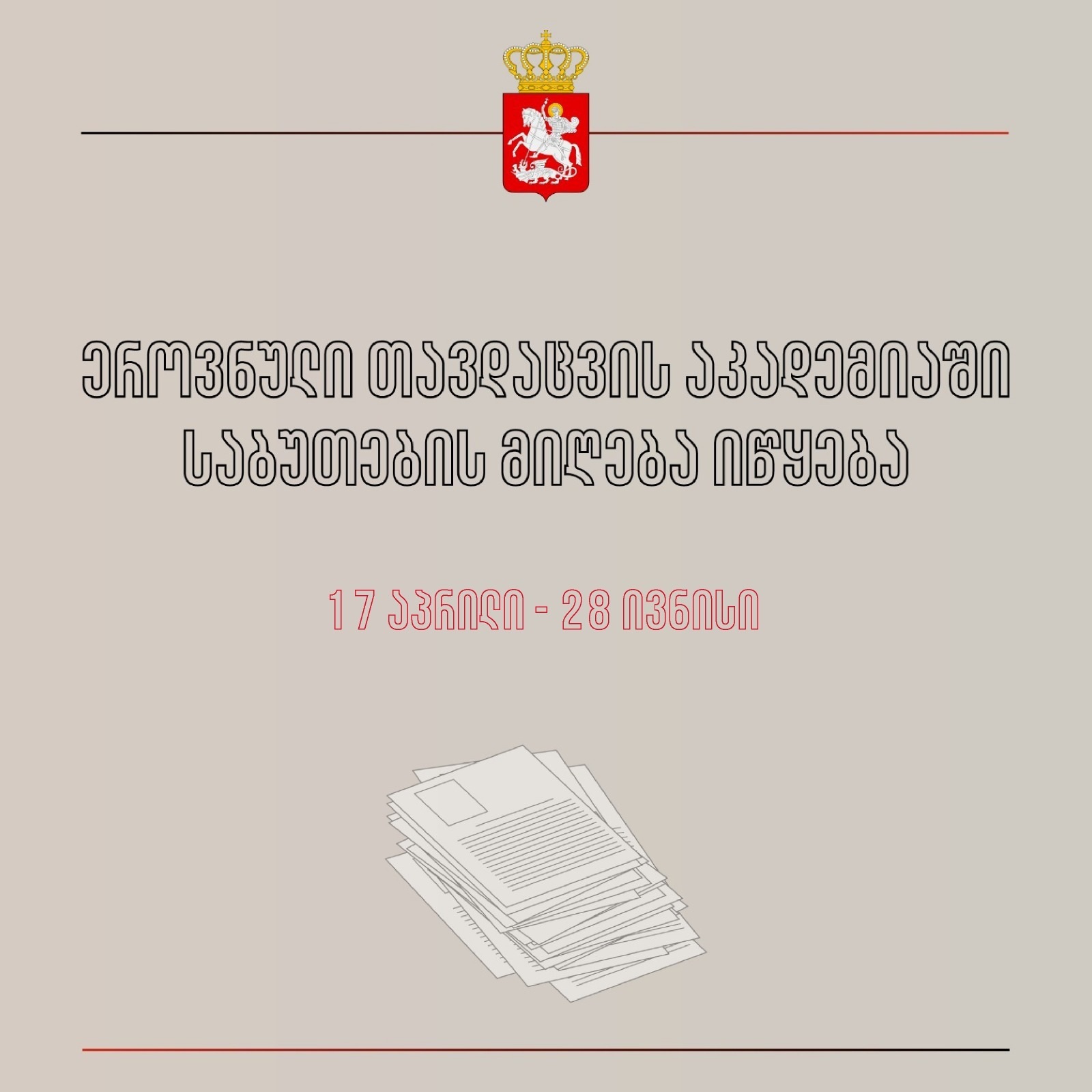 ეროვნული თავდაცვის აკადემიაში ბაკალავრიატის საგანმანათლებლო პროგრამებზე საბუთების მიღება 2023 წლის 28 ივნისის ჩათვლით გრძელდება. “ბაკალავრიატის საგანმანათლებლო პროგრამებზე მიიღებიან: 24 წლამდე აბიტურიენტები, რომლებიც დარეგისტრირებული არიან ერთია...