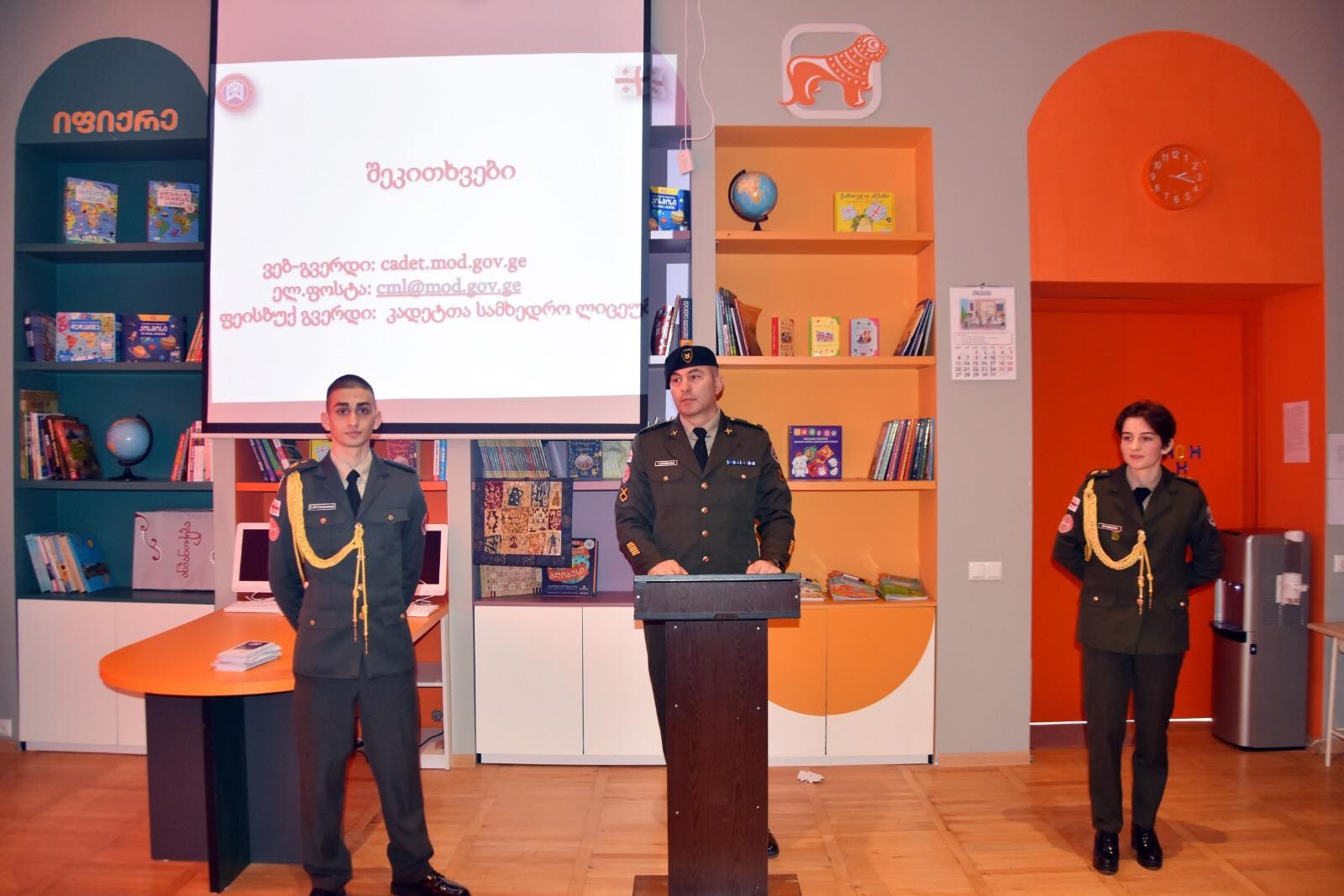 კადეტთა სამხედრო ლიცეუმი 2023-2024 სასწავლო წლისათვის მოსწავლეთა მისაღებად ემზადება. ამ მიზნით, სასწავლო დაწესებულების წარმომადგენლები საჯარო სკოლების მე-8 და მე-9 კლასების მოსწავლეებთან საინფორმაციო შეხვედრებს მართავენ. ამ ეტაპზე შეხვედრები მიმდინარ...