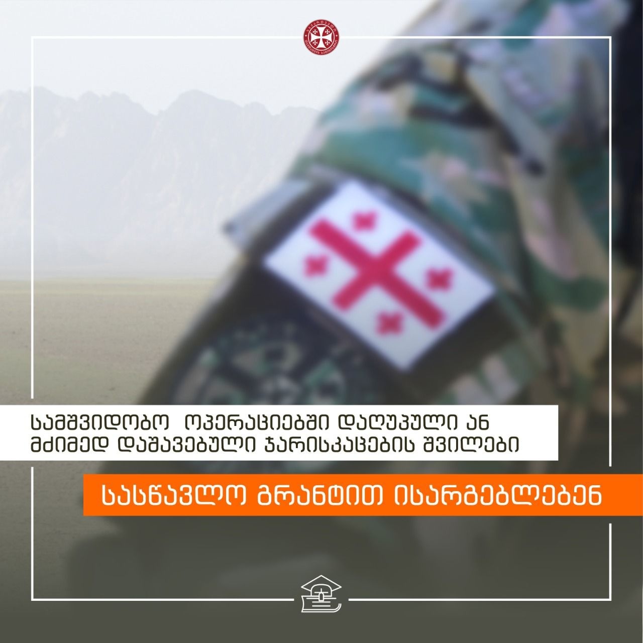 საქართველოს თავდაცვის ძალებში მოსამსახურე პირები, მოქმედი სამხედრო მოსამსახურეები, დაჭრილი და დაშავებული სამხედროები და მათი ოჯახის წევრები საგანმანათლებლო, კულტურულ თუ სამედიცინო დაწესებულებებში სხვადასხვა პრივილეგიითა და შეღავათით სარგებლობენ. ...