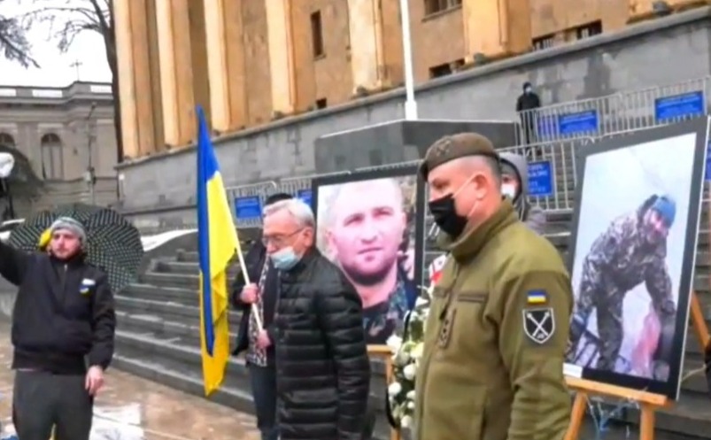 საქართველოს პარლამენტთან, სადაც უკრაინაში დაღუპული ქართველი მებრძოლების ხსოვნის პატივის მისაგებად პოლიტიკოსები და მოქალაქეები არიან შეკრებილი, უკრაინის ელჩი საქართველოში იგორ დოლგოვიც მივიდა. მან გარდაცვლილი ჯარისკაცების სურათებთან გვირგვინი მ...