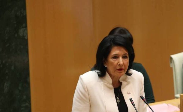 პრეზიდენტი სალომე ზურაბიშვილი უკრაინის პრეზიდენტ ვლადიმერ ზელენსკის მიმართავს, ელჩი დააბრუნოს. ამის შესახებ ზურაბიშვილმა პარლამენტში სიტყვით გამოსვლისას განაცხადა. “მე არ და ვერ შევალ, საიდანაც არ უნდა მოდიოდეს ეს, სააკაშვილის შეწყალების თემი...