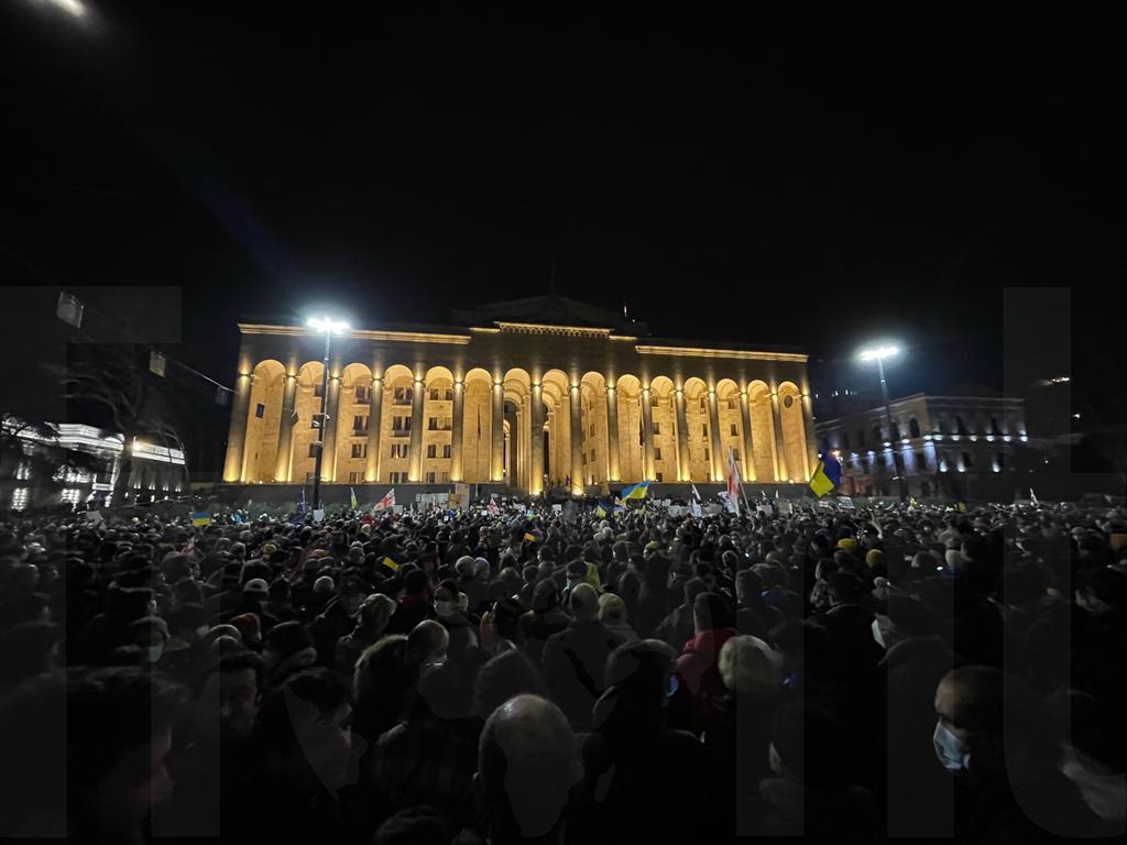 აქციის მონაწილეები ღამეს პარლამენტთან გაათენებენ, – ამის შესახებ უკრაინის მხარდამჭერ აქციაზე „დროას“ ლიდერმა ელენე ხოშტარიამ განაცხადა. მისი თქმით, შეკრებილები დილამდე ადგილზე დარჩებიან, 08:00 საათზე კი კანცელარიასთან გადაინაცველებენ, სადაც ირაკლ...