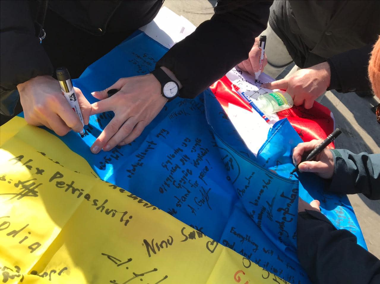 პარტია “დროას“ წარმომადგენლები უკრაინაში მხარდაჭერის ნიშნად მოქალაქეების მიერ ხელმოწერილ დროშებს ჩაიტანენ. სოლიდარობის აქცია დღეს თბილისსა და რამდენიმე ქალაქში იმართება. მოქალაქეეები უკრაინის და საქართველოს დროშებზე ხელმოწერით უკრაინის მიმართ მხა...