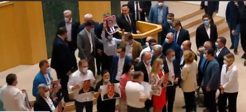 შს მინისტრის ვახტანგ გომელაურის ტრიბუნასთან მისვლის შემდეგ ოპოზიციონერი დეპუტატები მასთან გარდაცვლილი ოპერატორის ლექსო ლაშქარავას ფოტოებით მივიდნენ. მათ თან აქვთ ასევე პლაკატები ირაკლი ღარიბაშვილის გადადგომის მოთხოვნით. “ქართული ოცნების” დეპუტატე...