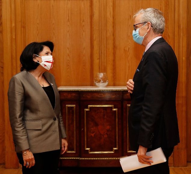 საქართველოს პრეზიდენტი სალომე ზურაბიშვილი დღეს ორბელიანების სასახლეში ევროკავშირის მედიატორობით გამართულ პოლიტიკურ დიალოგში ევროკავშირის საბჭოს პრეზიდენტის შარლ მიშელის პირად წარმომადგენელს კრისტიან დანიელსონს შეხვდა. პრეზიდენტი მიესალმა კრისტიან და...
