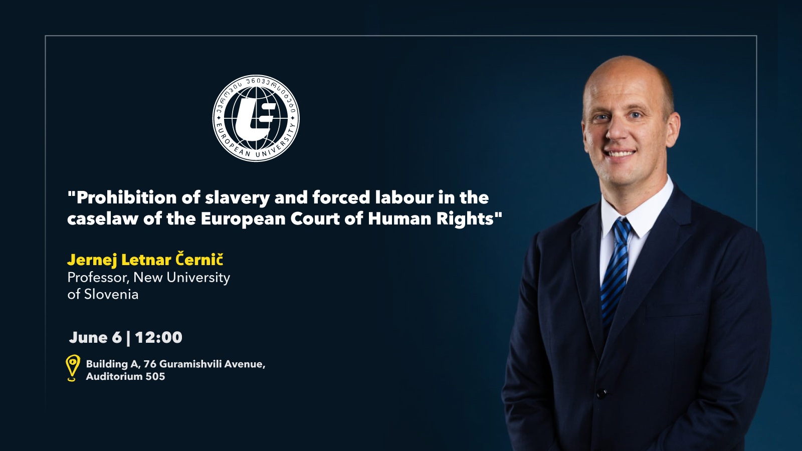 Erasmus+ საერთაშორისო კრედიტული მობილობის KA171 აქტივობის ფარგლებში, „ევროპის უნივერსიტეტი“ ადამიანის უფლებებისა და საკონსტიტუციო სამართლის მეცნიერ-ექსპერტს, პროფესორ იერნეი ლეტნარ ჩერნიჩს მასპინძლობს, რომელიც 6 ივნისს, 12:00 საათზე, საჯარო ლექციას ...