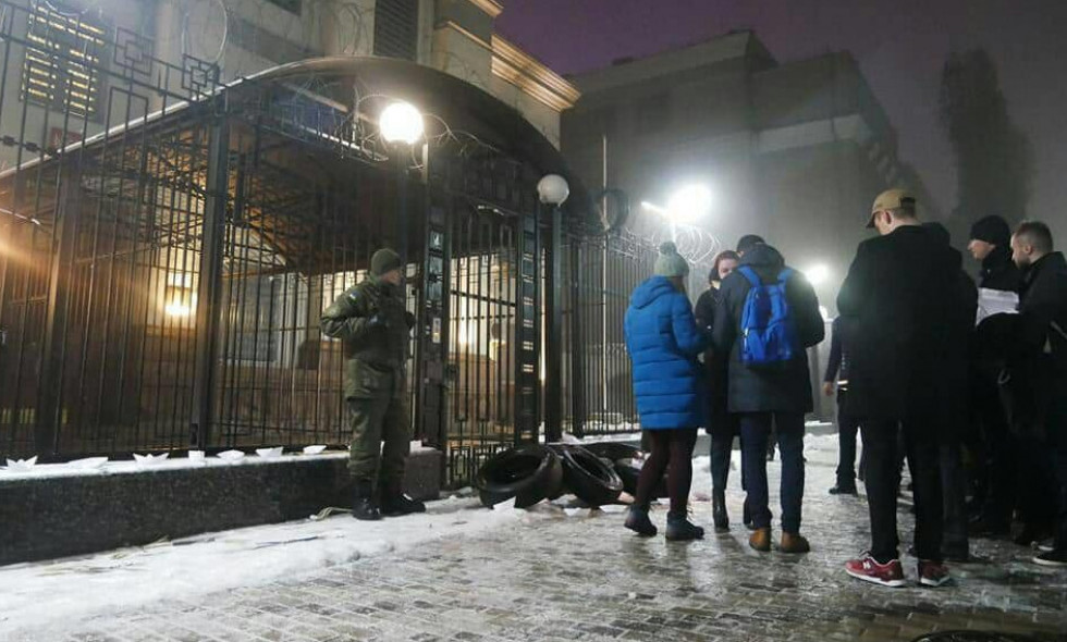 კიევი: ქერჩის სრუტეში სამხედრო კონფლიქტის ესკალაციის გასაპროტესტებლად, კიევში რუსეთის საელჩოსთან საპროტესტო აქციის მონაწილეები იკრიბებიან. დემონსტრანტებმა საელჩოს ღობეზე ქაღალდის ნავები დაალაგეს. აქციის მონაწილეებმა ადგილზე საბურავები მიიტანეს. ...