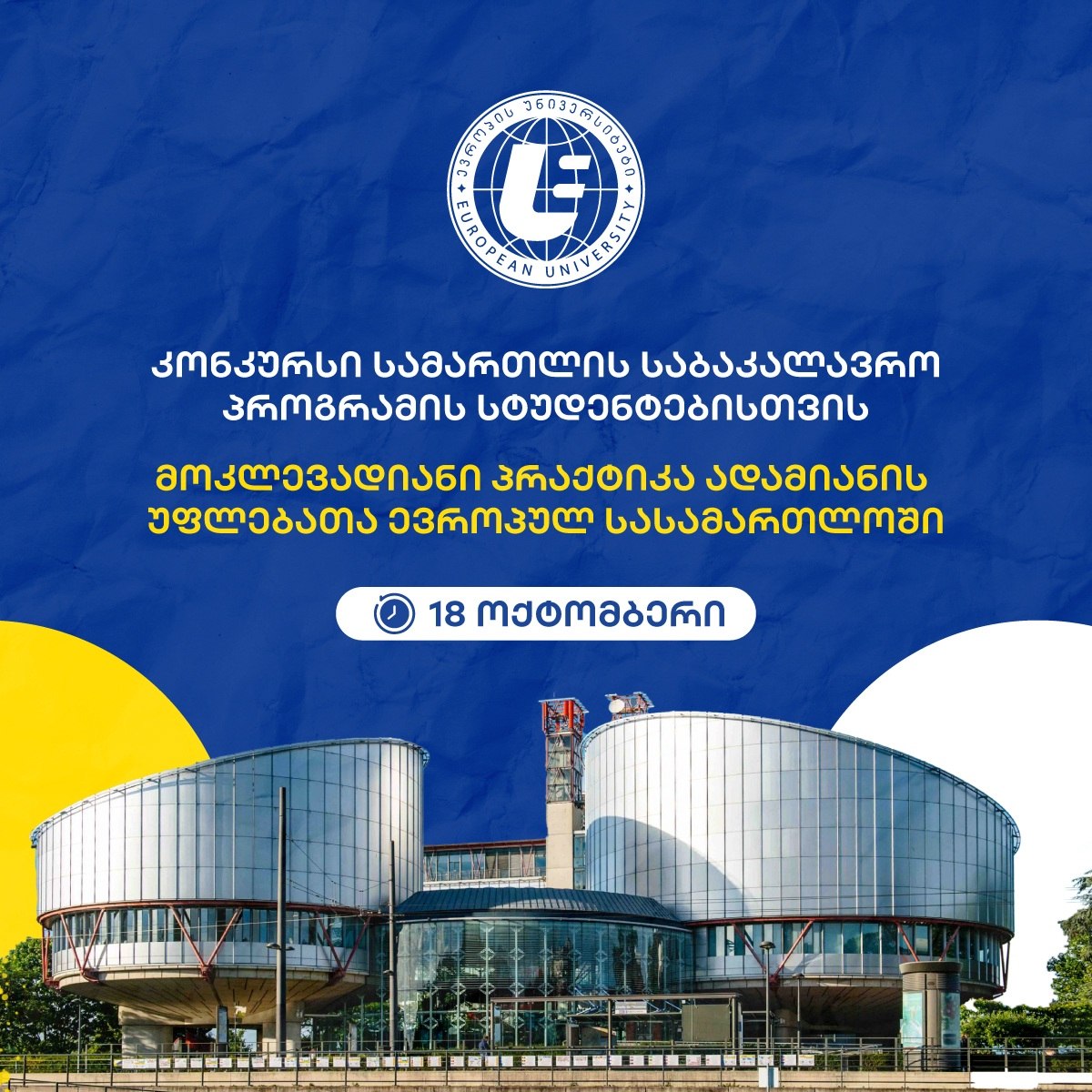 “ევროპის უნივერსიტეტის” სამართლის, ჰუმანიტარულ და სოციალურ მეცნიერებათა ფაკულტეტი ადამიანის უფლებათა ევროპულ სასამართლოში პრაქტიკის გასავლელად სამართლის საბაკალავრო პროგრამის სტუდენტებისთვის კონკურსს აცხადებს. პრაქტიკის ფარგლებში, სტუდენტებს ექნებათ...