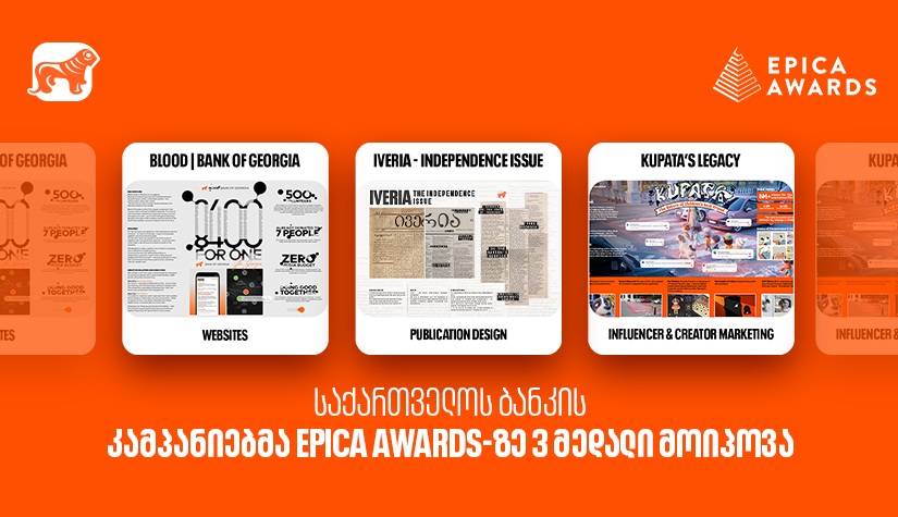 "საქართველოს ბანკის" კრეატიულმა კამპანიებმა საერთაშორისო კრეატიული ფესტივალის Epica Awards-ის სამ კატეგორიაში გაიმარჯვა და 1 ვერცხლის, 2 ბრინჯაოს მედალი მოიპოვა. Epica Awards-ის მიერ მინიჭებული მედლები შემდეგ კატეგორიებზე გადანაწილდა: * Blood | B...