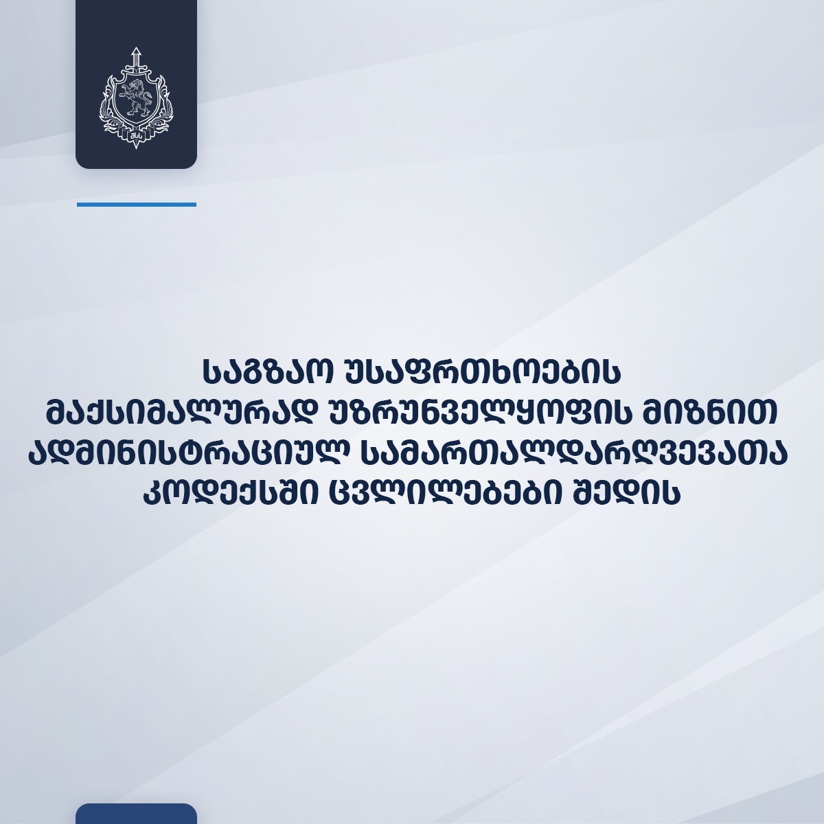 შინაგან საქმეთა სამინისტრომ შეიმუშავა საკანონმდებლო ცვლილებათა პაკეტი, რომლის მთავარ მიზანს საგზაო წესების მაქსიმალურად უზრუნველყოფა და საგზაო-სატრანსპორტო შემთხვევების პრევენცია წარმოადგენს. "ბოლო წლების განმავლობაში, მნიშვნელოვნად გაზრდილი სატრანს...